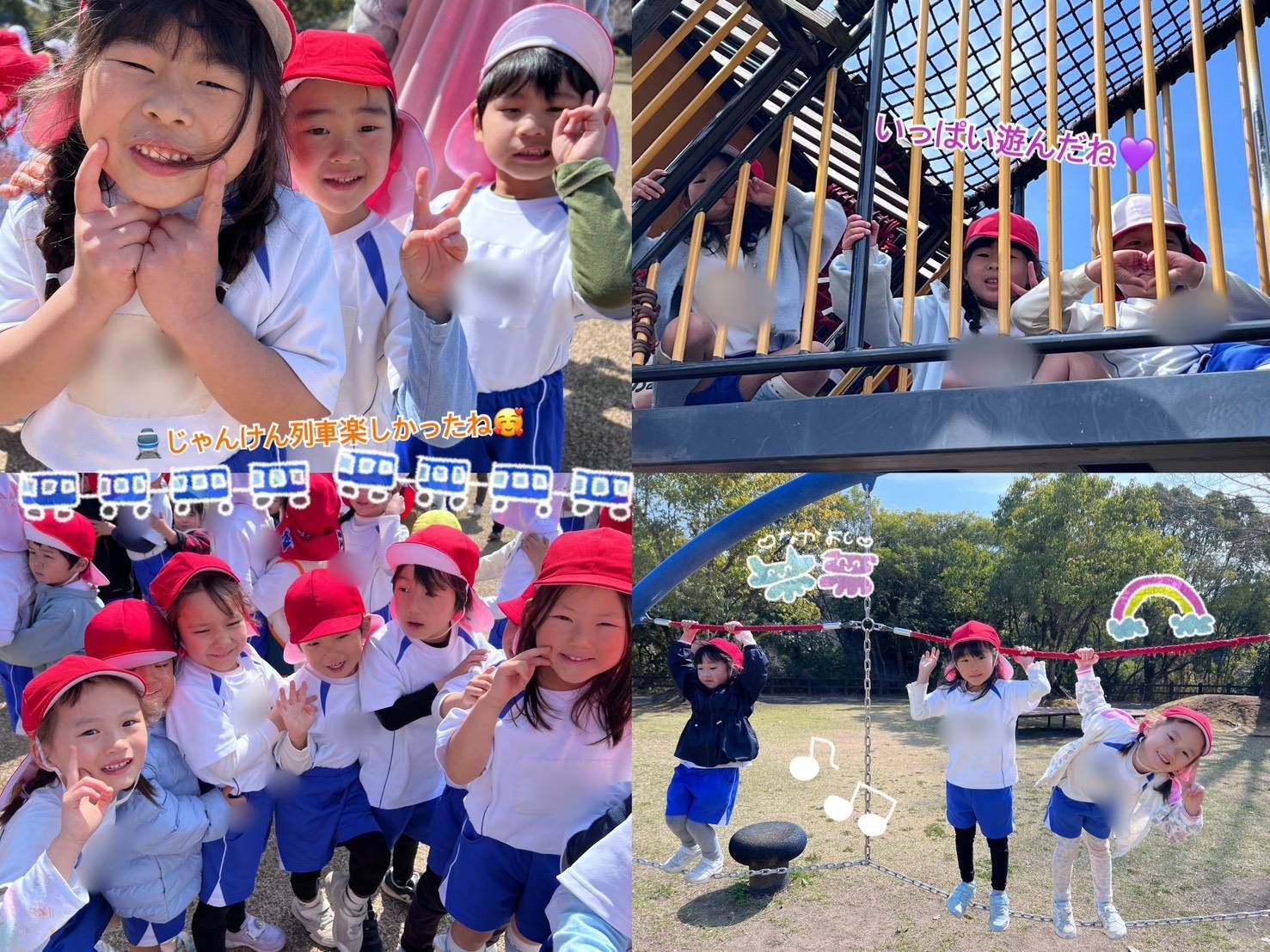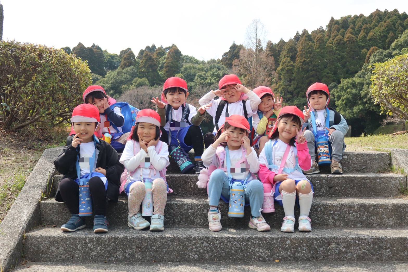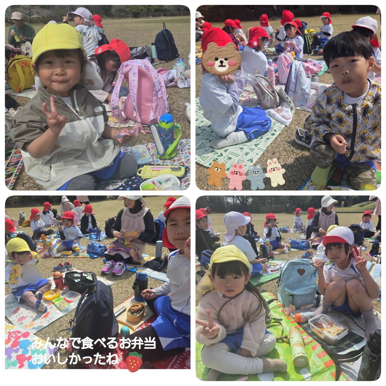 今日は「お別れ遠足」でした。平和台公園へお出かけしました。みんなでゲームをしたり,お弁当を食べたり,楽しい思い出ができましたね!!