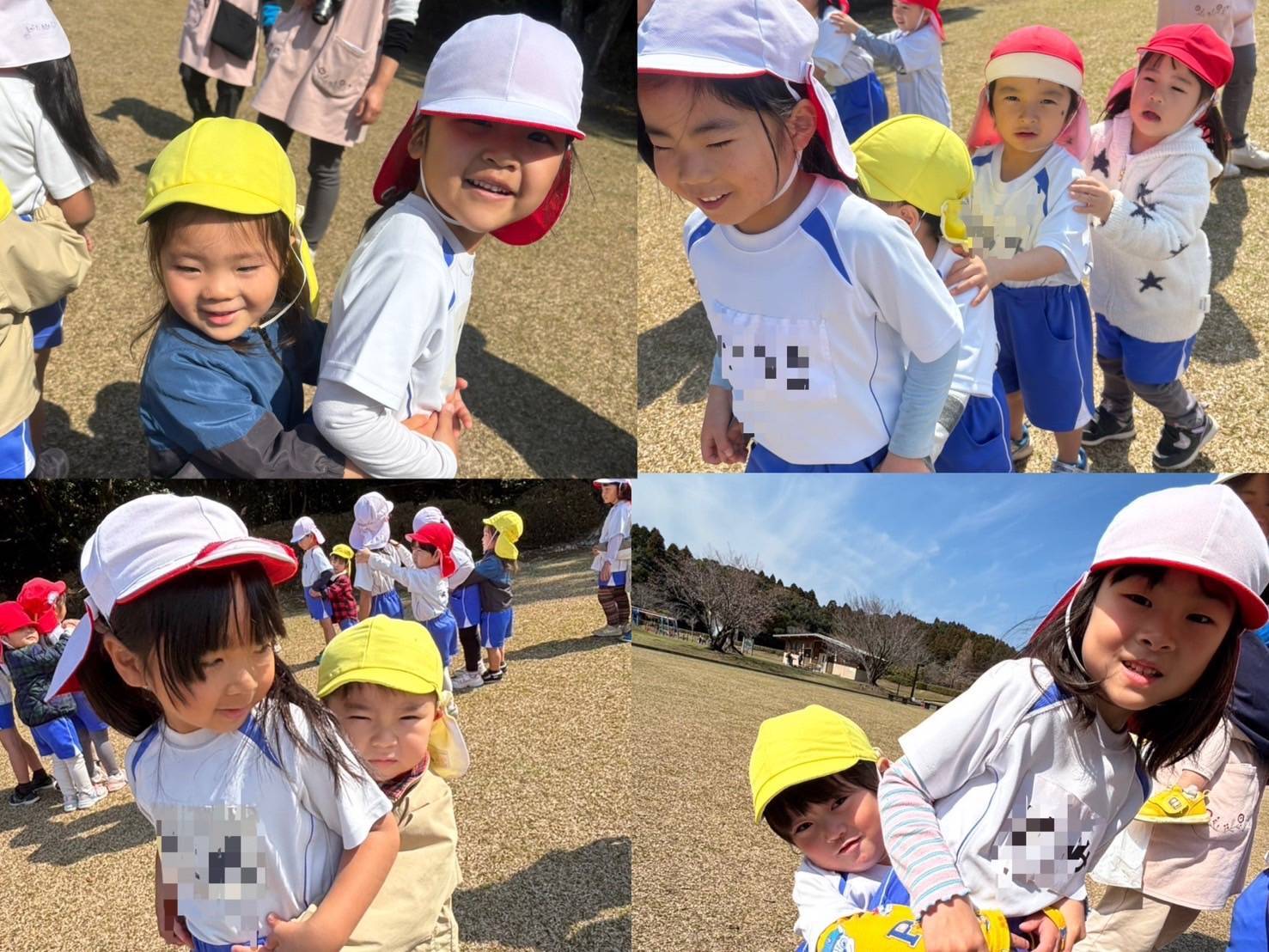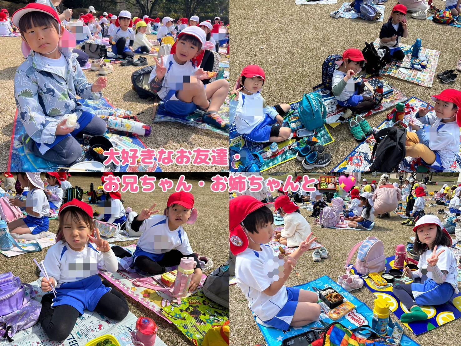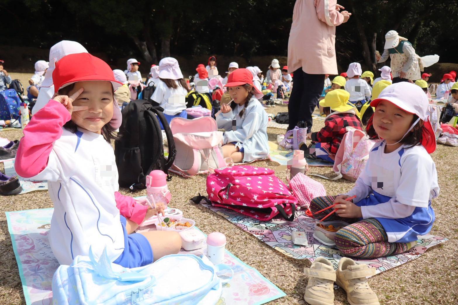 今日は「お別れ遠足」でした。平和台公園へお出かけしました。みんなでゲームをしたり,お弁当を食べたり,楽しい思い出ができましたね!!